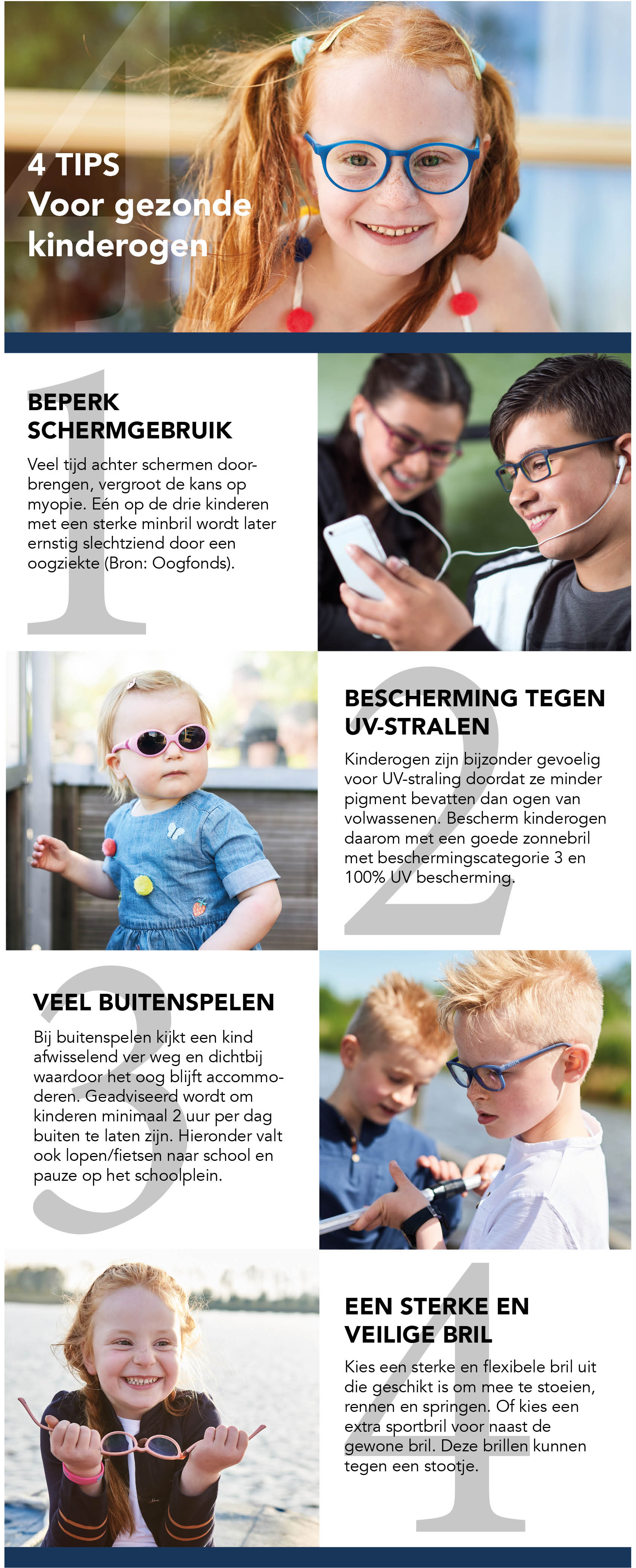 Deel onze tips voor gezonde kinderogen met je klanten via social media, je website of drukwerk en help mee aan het gezond houden van kinderogen! Je kunt onze infographic downloaden onderaan deze blog en vrij verspreiden en afdrukken.